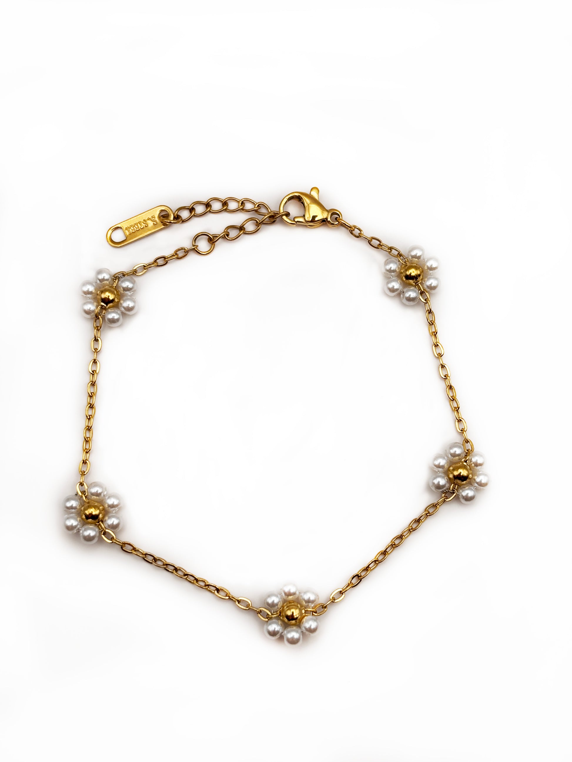 Ontdek de armband cute white pearl flowers van By Shan, een elegante, goudkleurige armband, handgemaakt en van stainless steel. Het subtiele, schattige ontwerp met witte parelmoer bloemen maakt deze armband perfect voor zowel dagelijks gebruik als speciale gelegenheden. Deze armband is gemaakt van roestvrij staal, wat zorgt voor duurzaamheid en een blijvende glans. Het hypoallergene materiaal is ideaal voor gevoelige huidtypen.